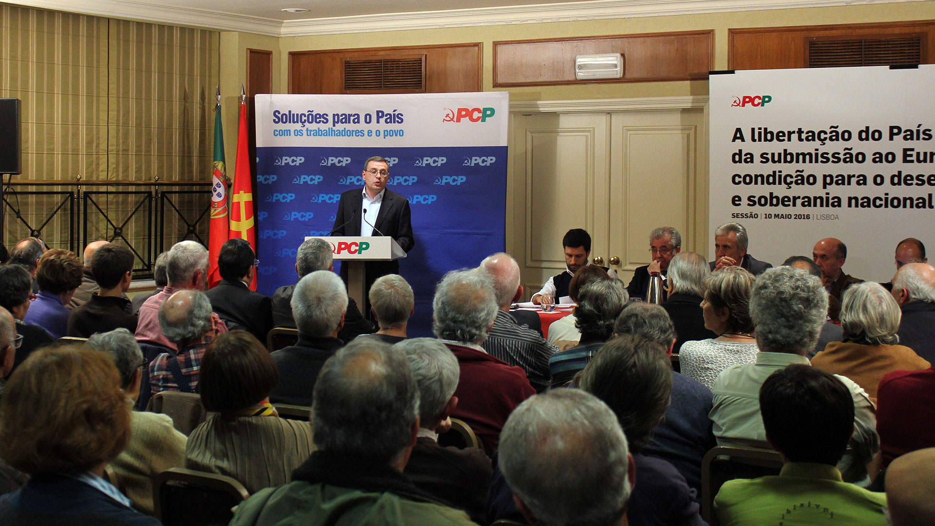 Foi com o objetivo de propor a libertação de Portugal destes três constrangimentos – integração na zona Euro, nível muito elevado da dívida pública e controlo da banca pelo capital monopolista – que, em setembro de 2014, o PCP apresentou na Assembleia da República um Projeto de Resolução, intitulado “Renegociar a dívida, preparar o País para a saída do Euro e retomar o controlo público da banca para abrir caminho a uma política soberana de desenvolvimento nacional”.
