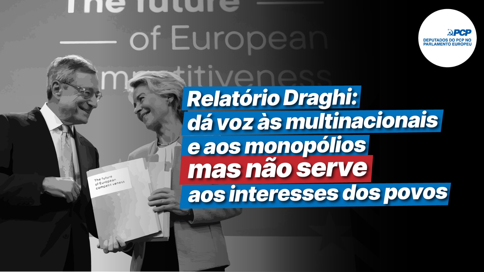 O relatório Draghi revela os planos da União Europeia para acelerar a transferência da riqueza do trabalho para o capital, para favorecer as multinacionais, para concentrar poder de decisão na UE e acentuar os desequilíbrios entre as grandes potências europeias e os países periféricos, para acentuar o militarismo.